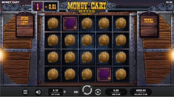 A variância de Money Cart é alta, o RTP é de 98% e o pagamento máximo é de 2.000x. Outro ponto interessante é que, em média, o jogador consegue uma rodada bônus a cada oito rodadas.